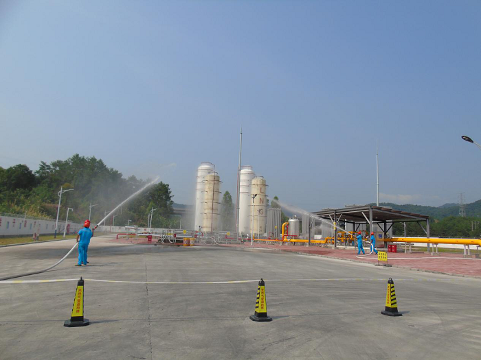 为提高天然气突发事故的应急救援能力,7月15日上午9点,上杭欧博最新能源有限公司在龙翔LNG储配站进行了反恐及火灾事故综合应急救援演练,上杭县副县长王尧华、县住建局、应急局、消防救援大队、市场监督管理局等领导莅临现场观看指导。本次演练主要模拟上杭欧博最新能源有限公司操作员在进行液化天然气罐车卸液过程中,因暴恐分子袭击导致液化天然气卸车金属软管法兰处密封面损坏,造成液化天然气泄漏并发生火灾,现场随即展开救援..