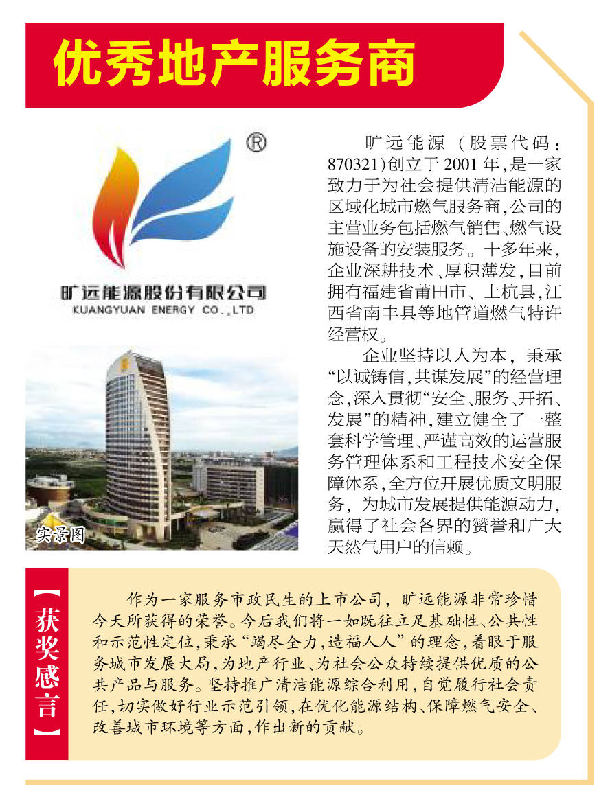 1月20日下午,在福州三坊七巷中瑞剧坊,由全国房地产商会联盟、中国主流媒体房地产宣传联盟全程指导,福建房地产主流媒体联盟主办的“2017中国房地产荣誉榜暨第五届福建地产年会颁奖盛典”圆满落幕。欧博最新能源凭借自身在地产行业服务与价值创造方面的突出表现,获得唯一“优秀地产服务商”大奖,民生服务价值获行业权威认可。在颁奖环节,欧博最新能源代表对主办方的积极努力和取得的丰硕成果表达了感谢,并表示“..