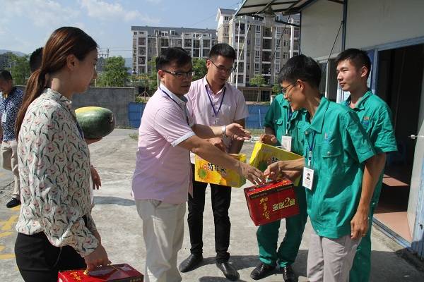 烈日当空,酷暑难耐,为切实保障一线员工在生产经营过程中的职业安全与身心健康,体现欧博(中国)人文关怀,确保高温期间防暑降温工作落到实处,欧博(中国)于7月份开展了高温慰问活动。 7月19日,欧博(中国)人力资源中心总监吴高忠、总裁办主任朱琳,在南丰欧博最新能源总经理杨永刚等的陪同下,先后至南丰富溪场站、客服营业厅开展高温慰问活动,为一线工作人员送去饮料、西瓜及药品等,并走访工地,详细了解富溪场站工程建设进度,..