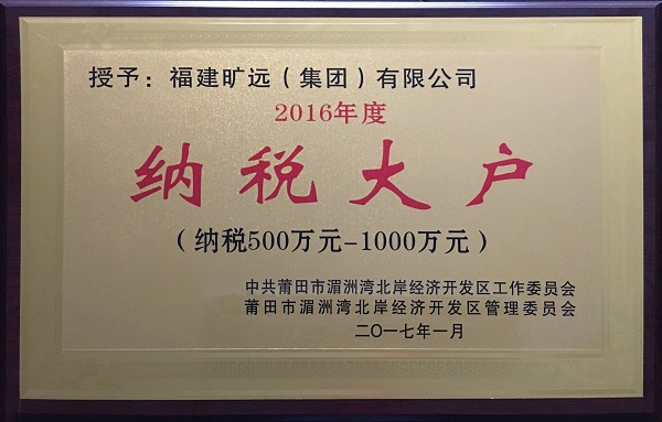 欧博最新欧博(中国)荣获2016年度“纳税大户”称号