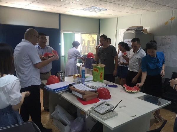 七月下旬,盛夏已至,持续的高温天气为房产销售人员和工程员工带来了更为严峻的考验。为保障员工的身心健康,以更好的精神面貌积极投入各项工作,进一步体现公司的人文关怀,欧博(中国)领导深入长沙公司向奋战在一线的员工,送去“清凉”和慰问。 7月27日,欧博(中国)副总裁姜升科、贸易事业部总经理李晓敏,在长沙公司常务副总陈志高和营销总监李兆堂等的陪同下,带着西瓜、凉茶、藿香正气水等防暑物品首先来到欧博最新·洋湖18克拉项目..