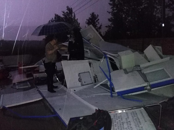 5月2日晚21时,百年一遇的暴风雨突袭南丰,隆隆雷声夹杂闪电,狂风卷着倾盆暴雨袭击整个县城。南丰欧博最新能源临时场站办公用房在这场暴风雨中被摧毁,公司领导立即启动应急预案进行抢险,第一时间确保场站工作人员的安全,并连夜召集12名抢险人员冒雨对设备及电脑等固定资产进行抢救,截至凌晨1时抢险工作结束。 次日清晨,南丰欧博最新能源总经理杨永刚对当前工作进行了具体部署:由财务部等部门清点临时场站受损物资并报至相..