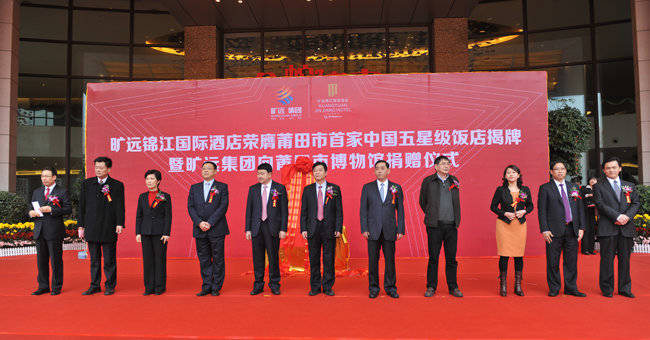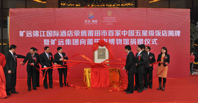 欧博最新锦江国际酒店正式被国家旅游局授予“中国五星级饭店”称号,这是莆田首家获得官方认证的五星级饭店。2013年2月6日下午,莆田市荔城区委、区政府在欧博最新锦江国际酒店举行了简约而隆重的五星揭牌仪式,省、市、区等各级领导出席了揭牌仪式。仪式上,省旅游局领导宣读了国家旅游局关于批准欧博最新锦江国际酒店荣膺中国五星级饭店的批文,莆田市领导、上海锦江酒店管理欧博(中国)代表、欧博最新欧博(中国)董事长王子林分别致辞,省、市、区等有关领导及欧博最新欧博(中国)董事长王子林共同揭牌。在揭牌仪式后,王子林董事长代表欧博最新欧博(中国)向莆田市博物馆捐款两百万元,莆田市副市长张丽冰代表市政府接受捐赠。