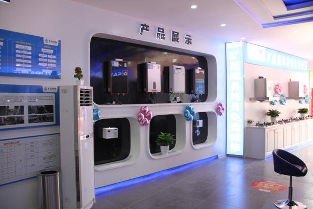 在产品展示区,营业厅精心布置了集灶具、烟机、燃气热水器、燃气壁挂炉、地暖等厨卫电器家居生活一体化的体验馆,为用户现场展示绿色节能高效时尚的现代化燃气生活,提供各种安全智能化的厨卫电器的销售服务。