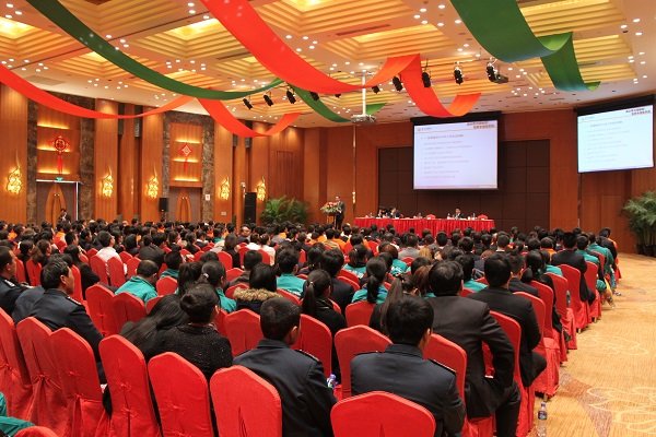 上午八点三十分,大会正式拉开序幕。欧博(中国)副总裁兼欧博最新能源股份有限公司总经理姜升科、欧博最新能源仙游分公司副总经理程丽丽、福建省上杭中阳管道天然气有限公司总经理李伟、欧博(中国)能源事业部副总经理兰书彬、莆田市宏盛市政工程有限公司总经理朱雪翔、欧博(中国)副总裁兼福建欧博最新房地产开发有限公司总经理王光忠、欧博最新欧博(中国)(长沙)房地产开发有限公司总经理朱骏、福建欧博最新酒店有限公司总经理陈大胜、莆田市宏发钢材交易市场有限公司副总经理柯军、福州市海宏盛贸易有限公司副总经理陈瑞源、欧博(中国)贸易事业部总经理兼厦门海宏物流有限公司总经理李晓敏、欧博(中国)人力资源中心总监汪立平、欧博(中国)采购管理中心总监李险峰、欧博(中国)总裁办副主任王瑜、欧博(中国)财务管理中心总监柯维忠、欧博(中国)成本管控中心总监张培英、欧博(中国)董事长助理兼审计监察部总监熊燕芳等先后上台发表讲话,对2013年度工作作深刻总结并对2014年的工作开展作详尽规划。