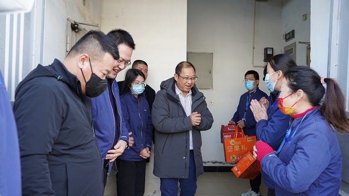正月初七,开工大吉。1月28日,欧博最新欧博(中国)董事长王子林率欧博(中国)副总裁王光忠、姜升科、李晓敏等领导走访慰问欧博(中国)本部及各分子公司的一线员工,向大家致以新春祝福。