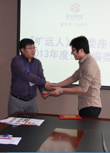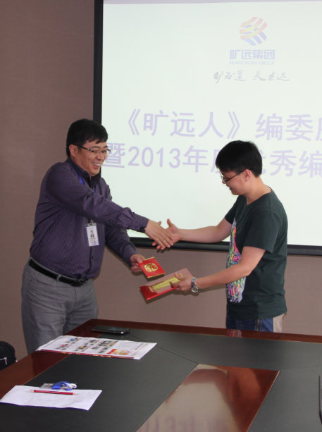 会议最后,针对在2013年度期刊建设中,表现较为突出的编委进行了表彰。其中,来自欧博最新能源的谢力耘荣获了“2013年度优秀编委”称号,来自欧博最新房地产的曾明月荣获了“2013年度企业活动活跃分子”,副总裁姜升科先生分别为其颁发了证书及奖金,并表示祝贺。