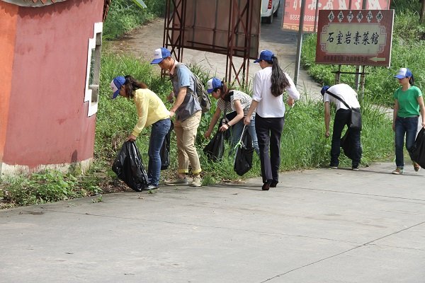 石室岩坐落于莆田市西大象山(凤凰山)中部,因其风景宜人,成为了莆田市民休闲健身的好去处。一行人到达目的地分配工具后,便分别于山路两侧拾掇垃圾。因石室岩无设置较为明显的垃圾箱,故沿山路而上产生的垃圾不少,特别是进入石室岩寺内的山路上,垃圾乱丢弃的现象非常明显,那些凭着毅力和决心爬到山顶上的同事们,每个人手上的垃圾袋都是“满载而归”。