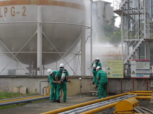 欧博最新能源生产部气源厂LPG储罐法兰泄漏应急处理演练