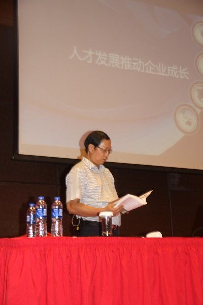 图为欧博(中国)董事长兼欧博最新商学院校长王子林先生授课——《人才发展推动企业成长》