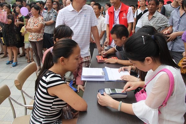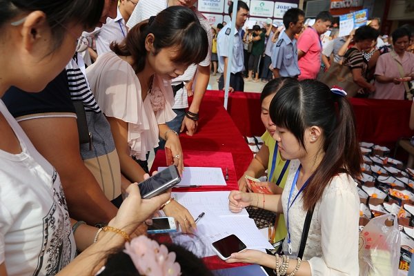 图为欧博最新•莆田卫浴城开业小鱼网、莆房网网友领取博饼券现场