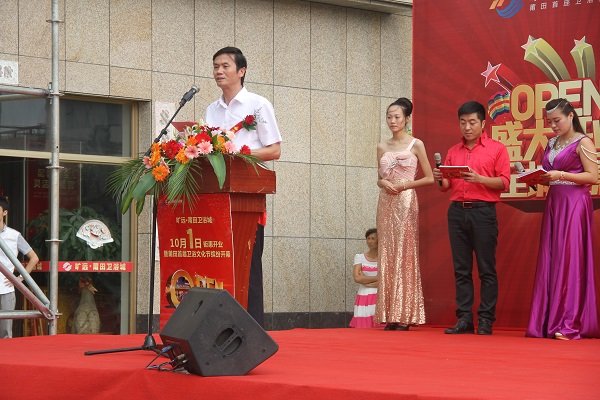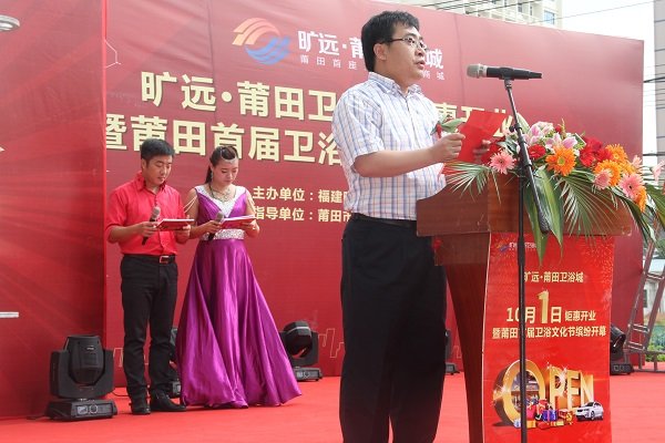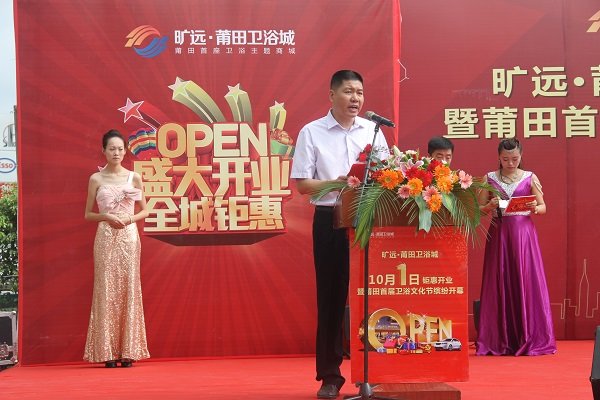 图为荔城区副区长翁俊钦为欧博最新•莆田卫浴城开业致辞