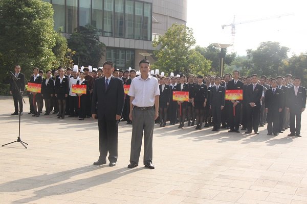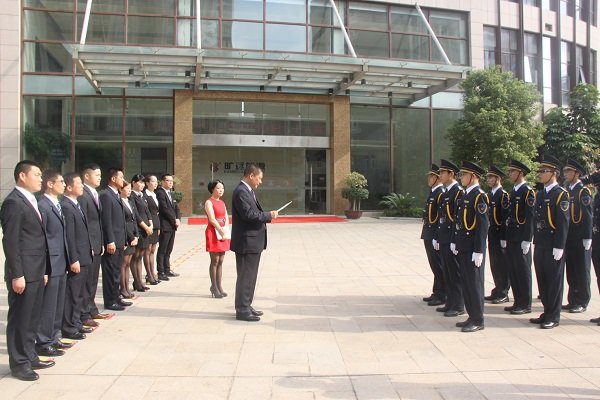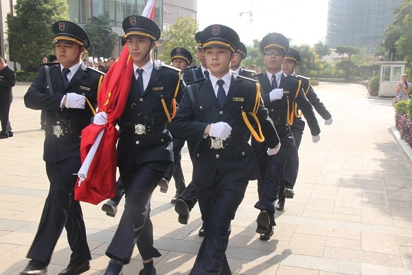 当天上午,酒店总经理仝晖先生带领全体员工进行了爱国敬业宣誓,由酒店各部门员工组建的国旗护卫队训练有素、身姿挺拔,展现出欧博最新锦江国际酒店员工应有的精神风貌!