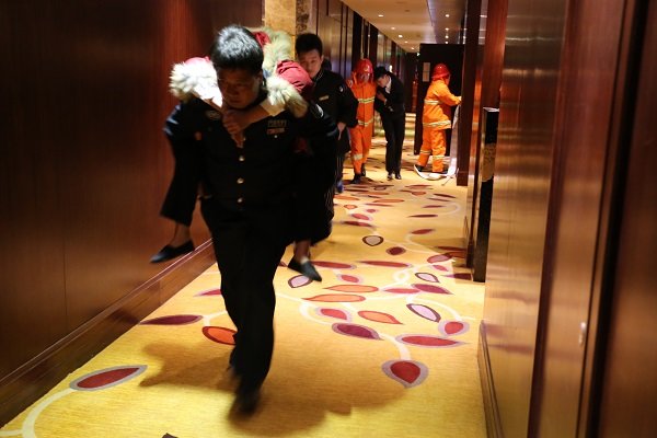 图为酒店2014年度消防演练现场