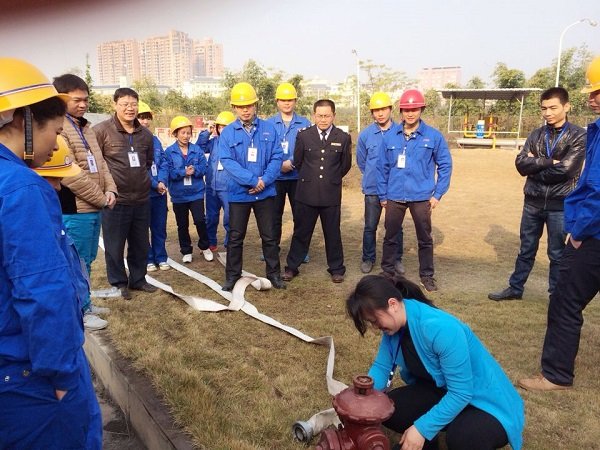12月 26日上午 8:30,参演队伍集结完毕,总指挥宣布2014年上杭中阳天然气全员冬季消防器材实操演练具体要求后,本次消防演练活动正式拉开帷幕。首先进行扑救初期火灾演练,在实操前运营部经理徐跃对灭火器的正确使用方法、步骤和灭火姿势等进行演示,随后安排部门员工现场实操灭火。为及时掌握和真实体验灭火实操,各部门员工争先到现场拿起灭火器按步骤进行实操灭火,反响热烈。其次,开展罐区消防栓开启和消防水带使用实操演练。按照储备站长演示的动作要领,储配站和市场、财务、客服一线员工进行了消防栓盖开启、消防水带连接、消防水带展开、消防栓开启和消防水喷射等一系列动作演练,现场气氛紧张而热烈。