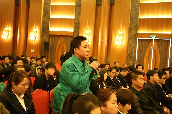 大会在上午九点五十分进入第二个环节:员工提问。会上,与会员工针对欧博(中国)发展、企业文化、经营管理、福利体系及个人想法等,积极与台上的欧博(中国)高管互动。通过互动交流方式,倾听员工心声,拉近了领导与员工的距离。因会上员工踊跃互动,反响热烈,原定于中午十二点三十分结束的议程,延迟至下午一点十五分结束。