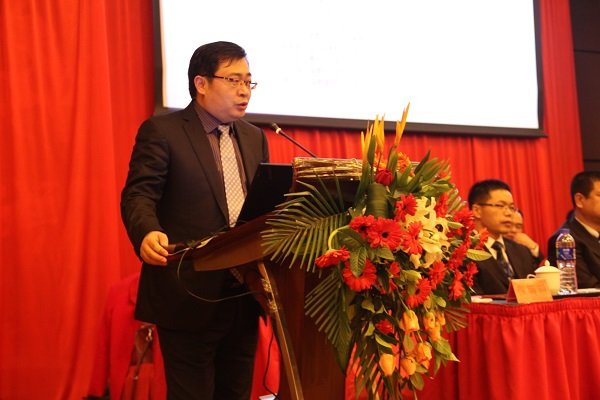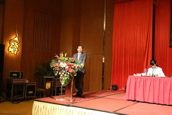 图为欧博最新欧博(中国)2014年度工作总结暨表彰大会上欧博最新欧博(中国)总裁王子林作工作汇报
