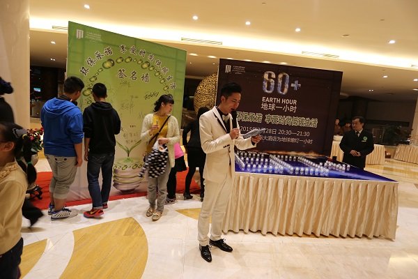 当晚20:30—21:30,为了响应“地球一小时”,为了保护“莆田蓝”,酒店关闭了楼体外围泛光照明及公共区域不必要的灯光,大堂正中央的“60+”吸引了许多宾客驻足留影,也纷纷加入到活动中,充分支持酒店一小时熄灯活动。更有不少宾客表示,“以前不知道原来国际上还有这样的活动,现在知道了,非常有意义,之后也要为环保工作贡献自己微薄的力量”。