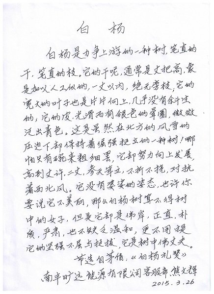 为营造良好的学习氛围,提高员工的书写质量,增强员工综合素质,提升企业文化品位,自2015年3月20日起,欧博(中国)第一届书法比赛正式启动。3月20日至3月30日报名期间,共收到44个参赛作品,经初评后,共有25个作品入选并进入OA评选。截至4月10日,书法比赛完成OA票选,比赛最终结果以初评成绩及OA票选为准。为确保比赛真实有效,4月13日至4月16日期间,欧博(中国)总裁办对入选参赛者进行了现场、视频书写确认。