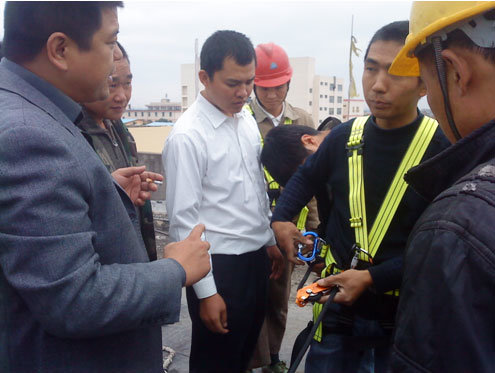 2009年11月23日,宏盛市政杨永刚总经理对市政全体员工进行安全教育。他说,“安全生产人人有责,安全生产涉及每家每户,对安全生产我们一定要切实做到位,做到点,要常抓不懈,营造出一个安全的生产施工氛围”。之后,他通过亲自示范新购置的高空作业悬挂安全防护绳,为全体员工进行安全操作规范培训。在培训过程中,杨总经理详细地讲解了安全绳的操作注意事项和安全防护的重要性,并让每位施工人员正确了解了高空作业悬挂安全防护绳的具体操作要点。通过亲自示范,所有员工都更直接地掌握了各项安全操作流程,达到了很好的培训效果。