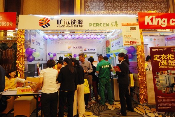 图为欧博最新能源参加莆房网家具建材团购会现场