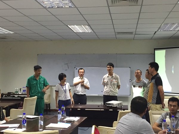 当天下午,以市场开发情景模拟为主题的课程带动了全体学员的应变思维,叶总邀请了欧博最新能源股份有限公司副总经理胡惠女士作为特邀讲师,参与情景模拟。在叶总分配情景模拟任务后,各小组便展开了热烈的探讨,并各自推选代表依次上台与扮演客户的胡总“过招”。每个小组在完成情景模拟任务后,再分别进入自评与互评的环节,最后再由叶总、胡总针对各组表现给出专业意见和建议。所有环节结束后,课堂上三个小组呈现积分相同的态势,最后在加赛的情况下决出了当天的冠军小组,并由叶总亲自为冠军小组颁发奖品及合影留念。