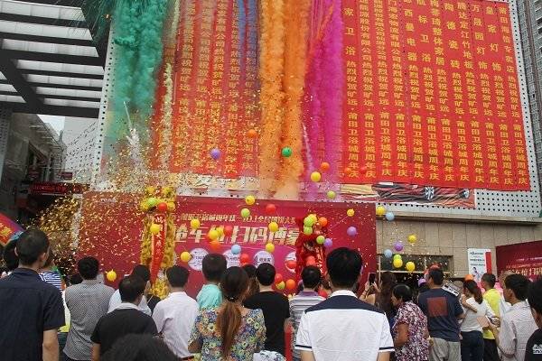 10月3日上午九点三十分,精彩的南派舞狮表演隆重拉开了欧博最新•莆田卫浴城周年庆序幕。卫浴城内外人头攒动,奔着低价抢拍的消费者们更是早早来到了现场,在台上主持人与台下消费者的有奖竞答互动中,欧博最新•莆田卫浴城周年庆活动正式启动。