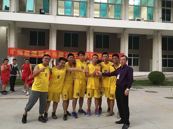 本次比赛共有4个队伍参赛,分别为梦之队、泰山队、蓝焰小分队和红领巾先锋队。自2015年8月17日起比赛火热展开,在历经近两个月、6场积分赛的激烈角逐后,梦之队与红领巾先锋队在总决赛顺利会师,于10月14日下午展开冠军争夺战。赛场上气氛活跃,双方队员本着“友谊第一,比赛第二”的原则,你追我赶,尽显风采,观众掌声阵阵,喝彩连连。经过一个小时的比拼,梦之队凭借良好的团队配合和战术运用,以比分52:35的优势战胜了红领巾先锋队,夺得了首届篮球赛的冠军。欧博最新能源总经理叶春先生也特地到现场为队员们加油打气,并为冠亚军球队颁奖。