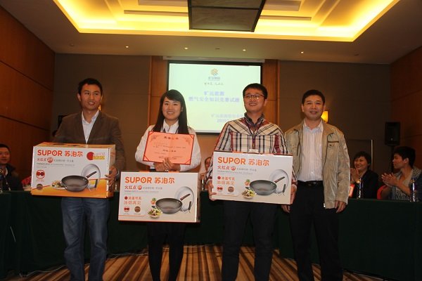 为推进能源板块各子公司、分公司的安全管理,提高燃气从业人员的安全意识,2015年11月27日上午,由欧博最新能源股份有限公司能源事业部主办,安环部承办的欧博最新能源燃气安全知识竞赛在欧博最新锦江国际酒店泰山厅顺利举行。欧博最新能源股份有限公司副总经理黄剑锋、副总经理胡惠、总工程师谢建通、总经理助理施伟江、仙游分公司副总经理郭明亮、福建上杭中阳管道天然气有限公司副总经理张进华等担任本次比赛评委。