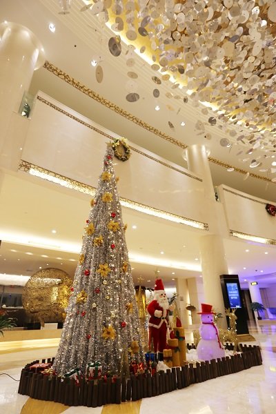 圣诞节将至,欧博最新锦江国际酒店内布置了带有浓郁圣诞色彩的装饰,一棵5米高挂满饰物的银色圣诞树矗立在大堂中央,伴随着欢乐的圣诞歌曲,整个酒店充满着欢庆喜悦的节日氛围。