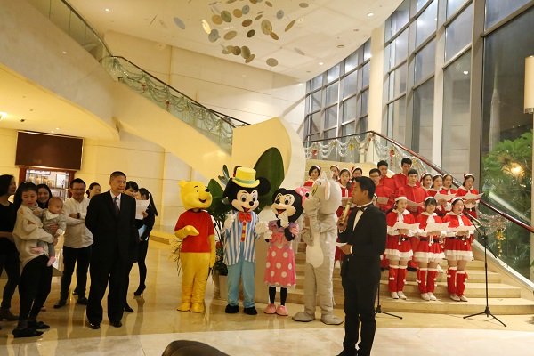 12月11日18:00时,在酒店来宾们的见证下,欧博最新锦江国际酒店总经理仝晖先生宣布了“圣诞亮灯仪式”的开启。步入酒店,随处弥漫着浓浓的圣诞气氛。身穿圣诞服装的酒店员工唱诗班演唱经典圣诞颂歌,优美的歌声将整个大堂的氛围烘托得美妙而神圣,期间更有梦幻的迪斯尼萌物盛装出席,迎接宾客的到来!