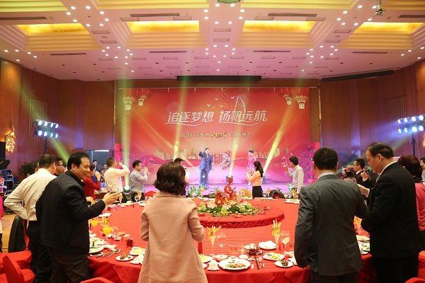 图为2016年迎春晚会董事长王子林上台致祝酒辞