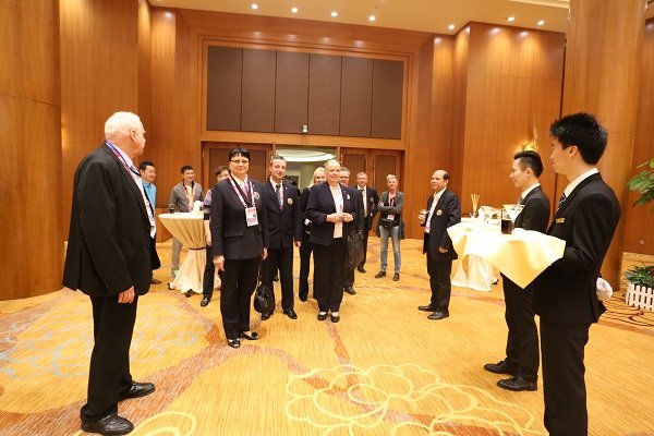 4月1日晚19:30,第25届世锦赛国际体联贵宾的盛大接待晚宴在欧博最新锦江国际酒店锦绣厅隆重举行。出席宴会有国际体联主席格兰迪·布鲁诺、国际体联副主席科恩·斯拉瓦、国际体联副主席列格力斯·米歇尔等共二十余位国际贵宾。