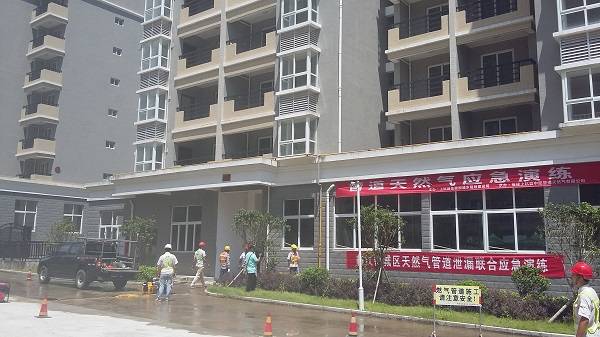 2016年6月22日上午,上杭县南岗某小区单元门户外燃气管发出刺鼻的气味,群众立即根据管道标上的联系电话进行报警。上杭中阳天然气抢修中心接到报警后,第一时间通知抢修人员迅速赶往现场确认险情,在确认天然气庭院低压管道发生泄漏后,即刻启动突发事故应急措施。随后疏散组、泄漏源控制小组、技术组、抢修组和后勤保障等相关人员火速到达事故现场,各部门单位协同对天然气管道泄漏事故进行应急救援。10点30分,该小区庭院管燃气泄漏突发事故抢修完毕,现场警戒解除,恢复供气。