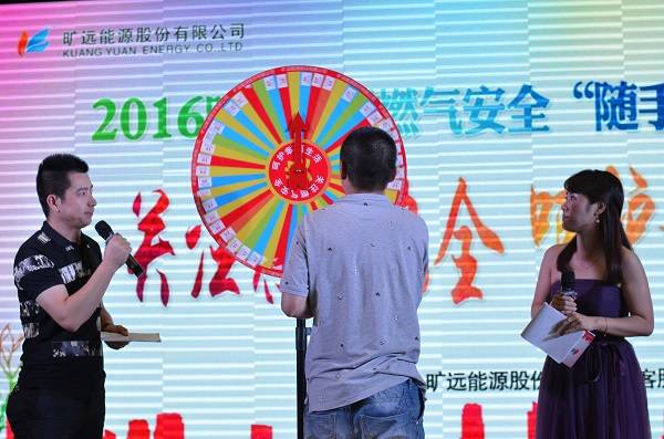 转盘抽奖环节将活动推向了高潮,共抽取燃气安全达人幸运奖若干名,优胜奖20名,三等奖3名,二等奖2名,一等奖1名。期间更有热心观众踊跃上台,表达了对燃气安全的所感所想,以真实的案例为背景,对欧博最新能源的优质服务表示感谢。