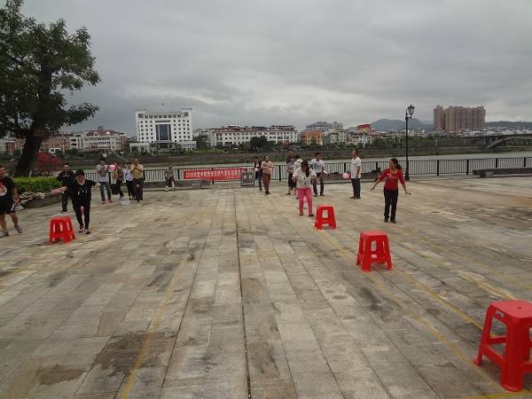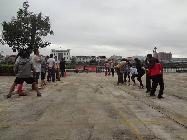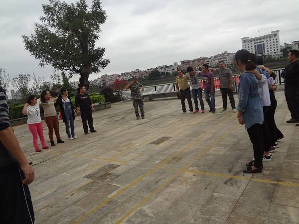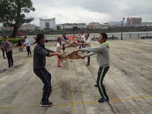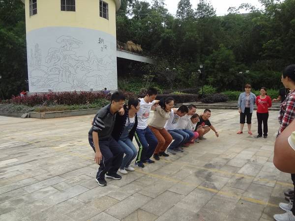 到达目的地后,教官带领全体人员至南江滨公园进行拓展游戏。首先进行军姿队列讲解训练,接着将队伍分成“猛虎”和“雄鹰”2个队进行PK。在教官的指导下,分别进行“空中接力”、“齐心协力站起来”、“丑小鸭赛跑”、“水果蹲”、“五毛和一块”、“杯水车薪”等六项活动。游戏前段“雄鹰”队气势夺人,以3:0成绩领先;“猛虎”队不甘落后,在“杯水车薪”环节中展露队员们的自信与团结,以绝对优势战胜对手,彻底点燃了团队的激情。整个游戏在欢声笑语中圆满结束。