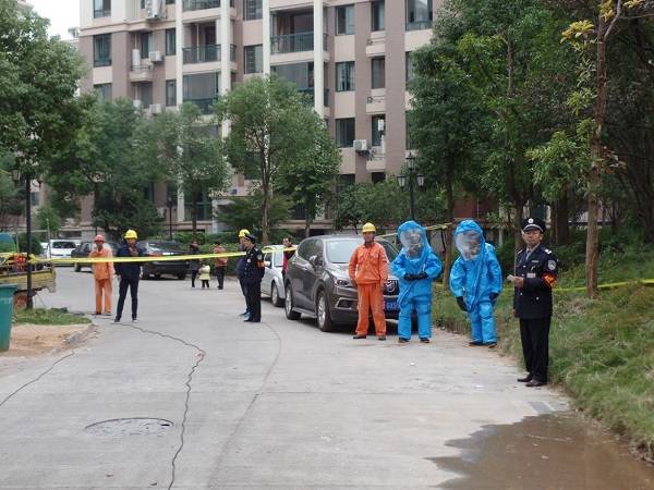 演练开始,各小组就位。在接到居民报警电话后,总指挥即刻启动抢险预案,随后检测组立即对泄漏点进行燃气浓度检测,划定警戒范围;警戒小组拉上警戒带隔离疏散人群;同时消防灭火车赶到现场,并拉响警报;巡线员接到指令立即关闭管道上下游阀门、泄漏点楼栋调压箱;消防员持消防水枪抢占有利位置喷洒水雾稀释燃气;在泄漏燃气受到控制后,轴流风机启动进一步吹散降低现场燃气浓度,检测人员反复检测燃气浓度达到1%安全范围值;抢险施工班组进场对受损管道进行修复、检验。最后,巡线组按指令恢复小区供气,检测人员再次对周边环境进行检测,确认正常,解除现场警戒。随后,建设局执法大队曾淋辉大队长对演练发表总结点评,并予以肯定。