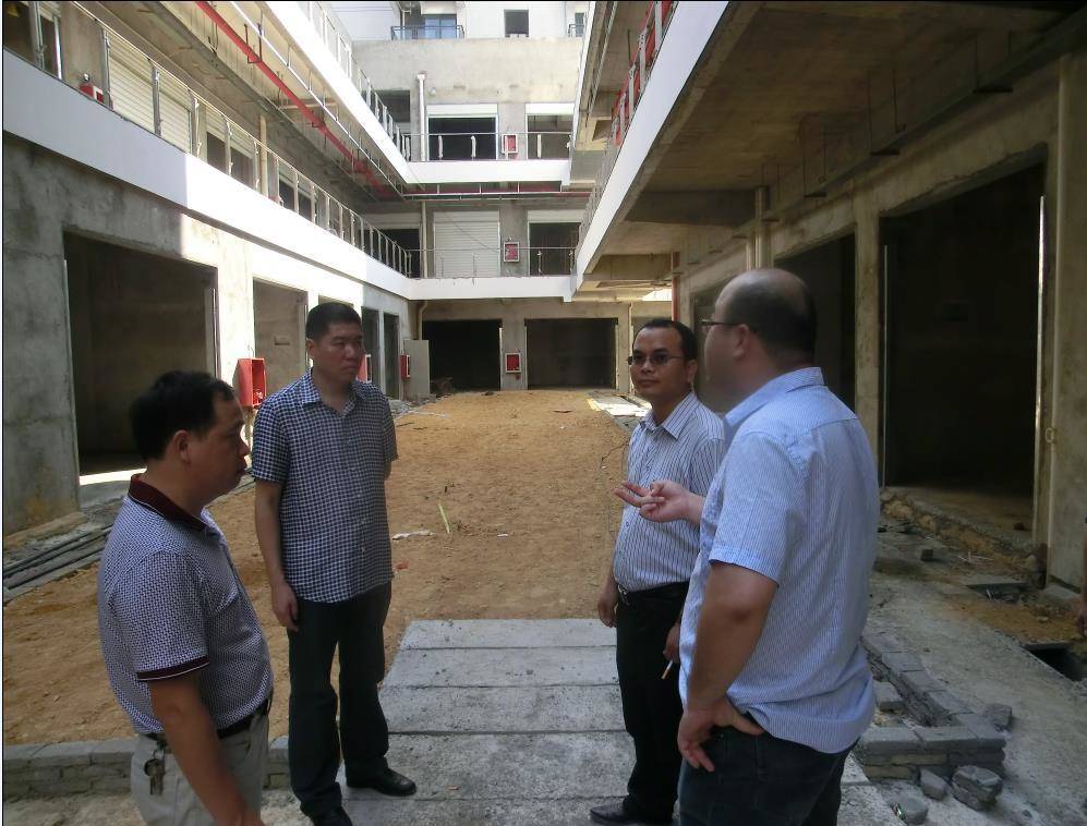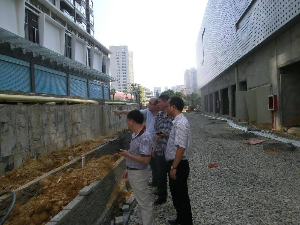 2013年10月11日上午,欧博(中国)副总裁王光忠先生刚履任欧博最新房地产开发有限公司总经理的第二天就带领公司的赖副总、陈总助等到东方银座项目工地现场视察,重点检查了售楼中心、入户大堂、裙楼外墙石材干挂及景观绿化等工程项目。王总在听取工程部林经理介绍附属工程施工情况的同时,也协调解决了在扫尾工程施工过程中存在的一些问题和水电立户安装的有关事宜。