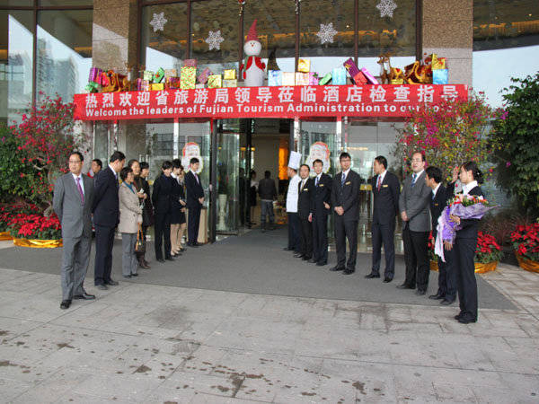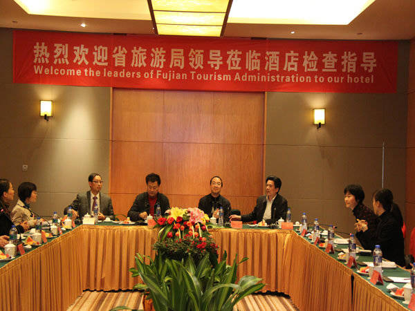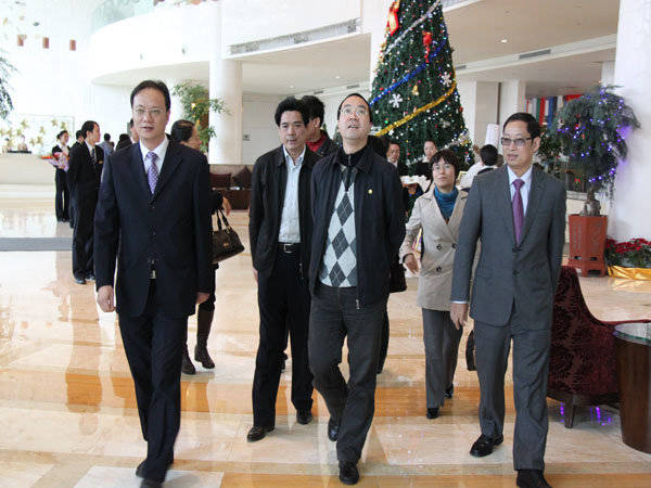 2011年12月29日,省旅游局陈副局长一行在我司有关领导的陪同下莅临酒店进行“星评”检查指导工作。我欧博(中国)王子林董事长和酒店管剑清总经理等高管亲自到酒店门口欢迎检查组领导的到来,并全程陪同了此次检查。