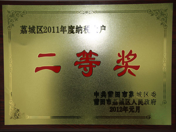 福建欧博最新欧博(中国)荣获莆田市“荔城区2011年度纳税大户二等奖”称号!