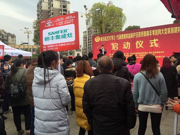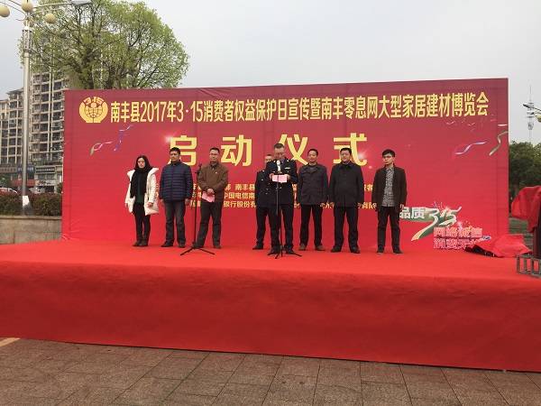 3月15日上午,南丰县2017年“3.15消费者权益者保护日”宣传活动暨南丰零息网大型家居建材博览会启动仪式在桔都广场顺利举办。南丰县委宣传部副部长罗健、县市场和质量监督管理局局长胡义华、县消费者协会会长、副会长、各常务理事单位及主要负责人出席启动仪式并发表讲话,南丰县烟草公司、中国移动通信、中国电信欧博(中国)、中国邮政储蓄银行及南丰欧博最新能源等多家单位参加该活动。