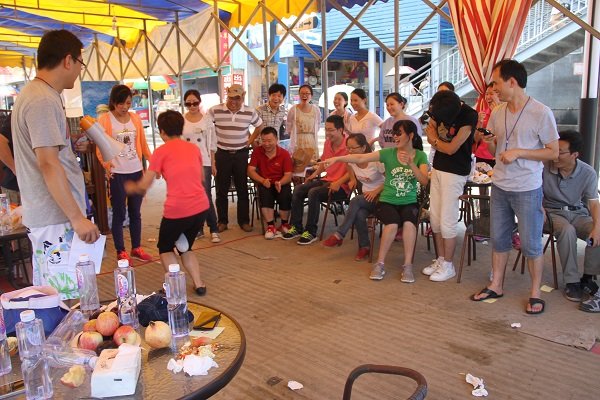 虽烈日炎炎,却难抵参与者们高涨的热情。到达目的地后,以抽签的方式分成了沙漠之鹰队、飓风队、烈日队及野狼队四个小组进行团队拓展。