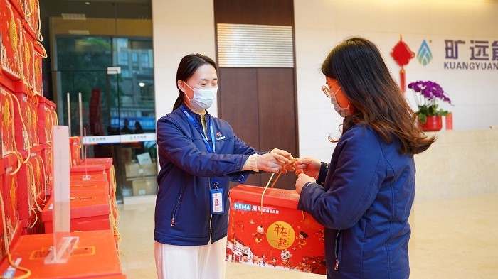 兔年将至,备年礼、囤年货都是必不可少的仪式。一件件代表着公司关怀的年货堆成一座座小山,承载了公司对每一位员工真挚的问候与祝福,红色的包装更为发年货现场增添了喜庆、热闹的氛围感。